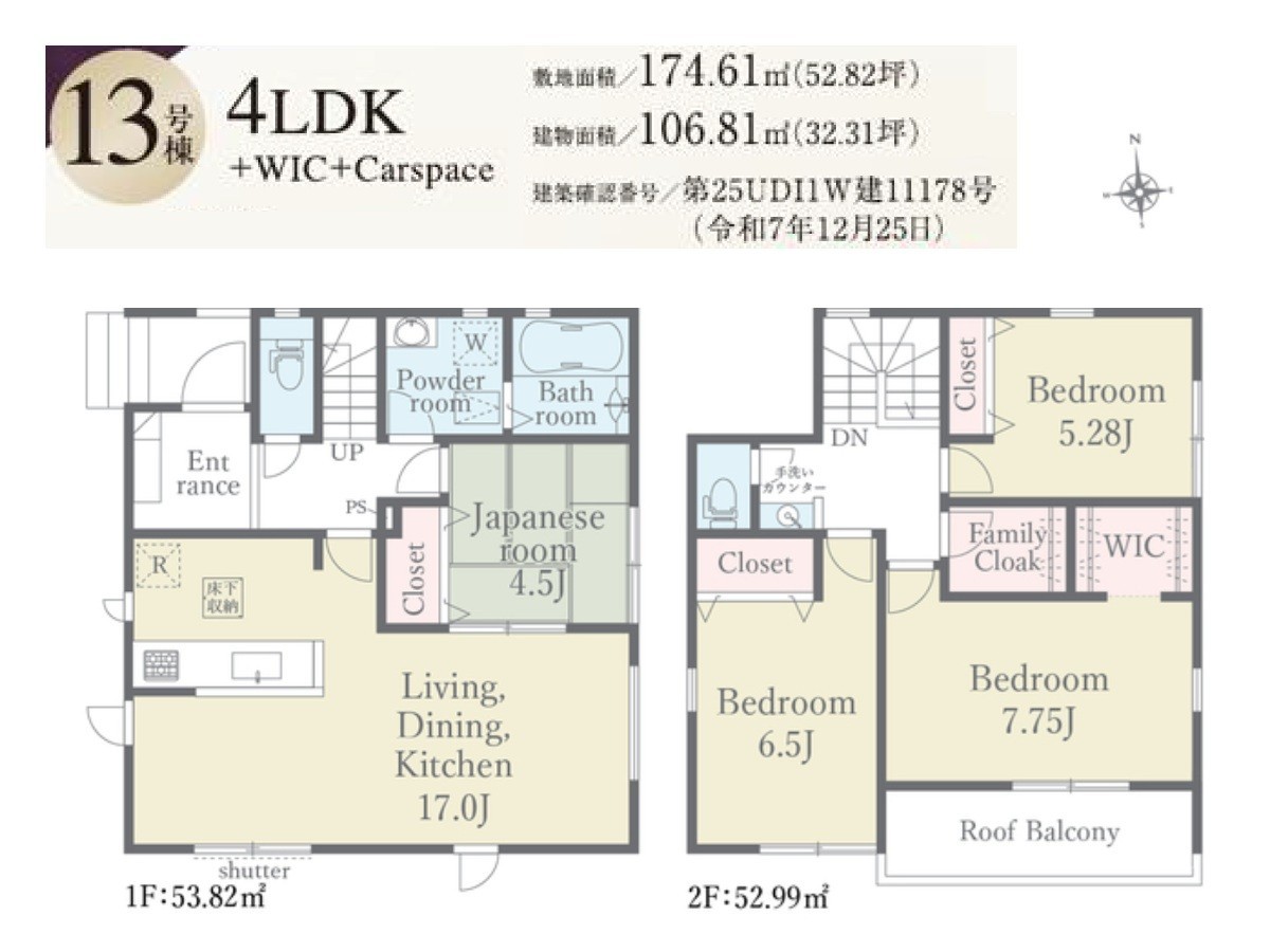 | 建物現況 | 建築中 | 建築確認番号 | 第25UDI1W建11178号 |