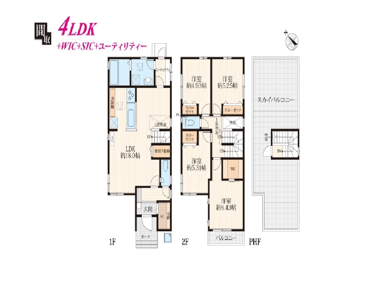 | 間取 | 4LDK (LDK18帖、洋室6.43帖、洋室5.31帖、洋室5.25帖、洋室4.93帖) | ||