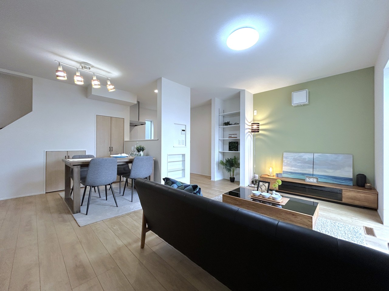 □リビングは16帖以上♪家族が自然と集まる広々空間♪