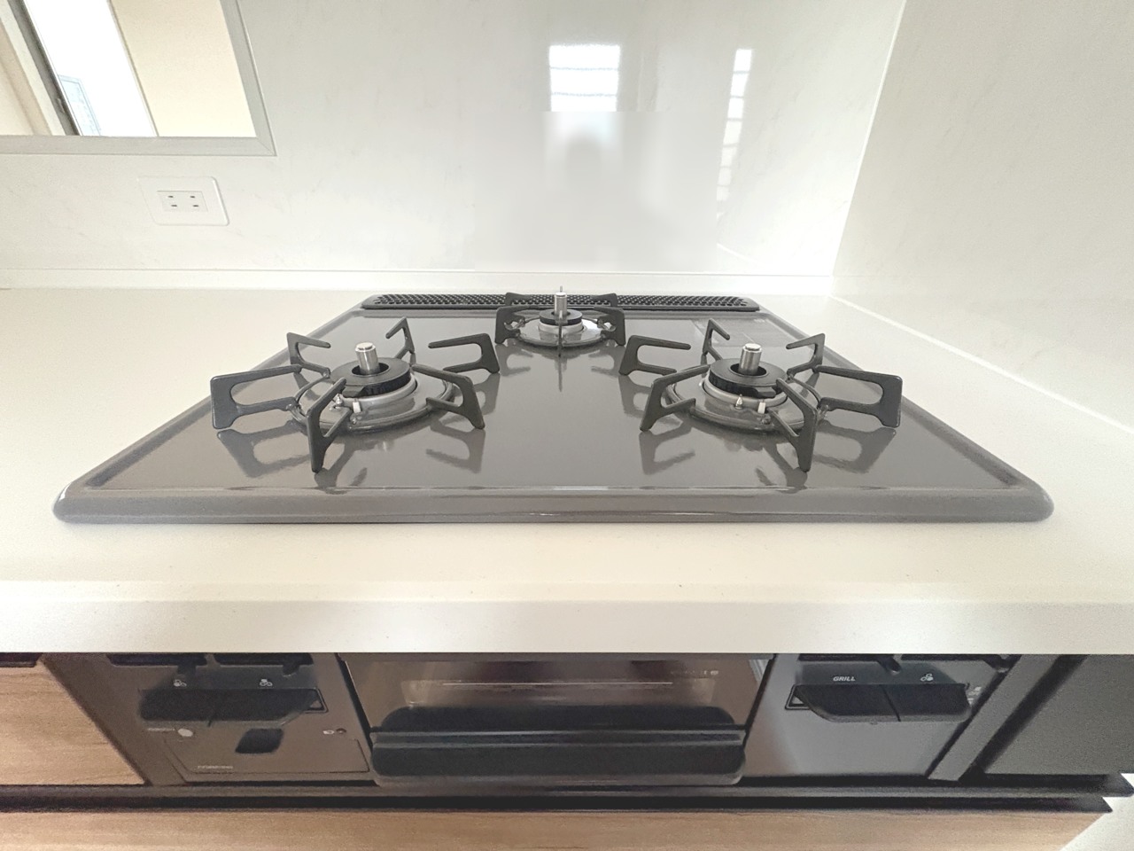 ガスコンロは3口設置。汁物・主菜・副菜を同時進行で調理できて便利です