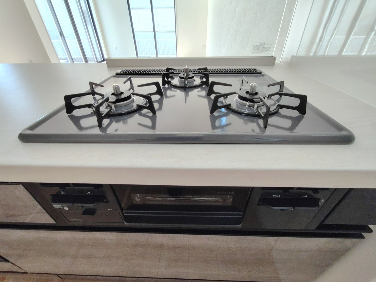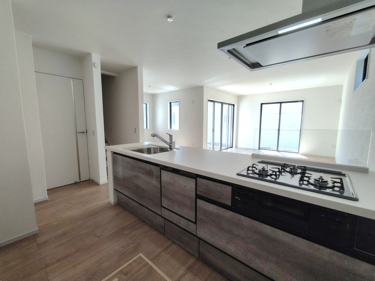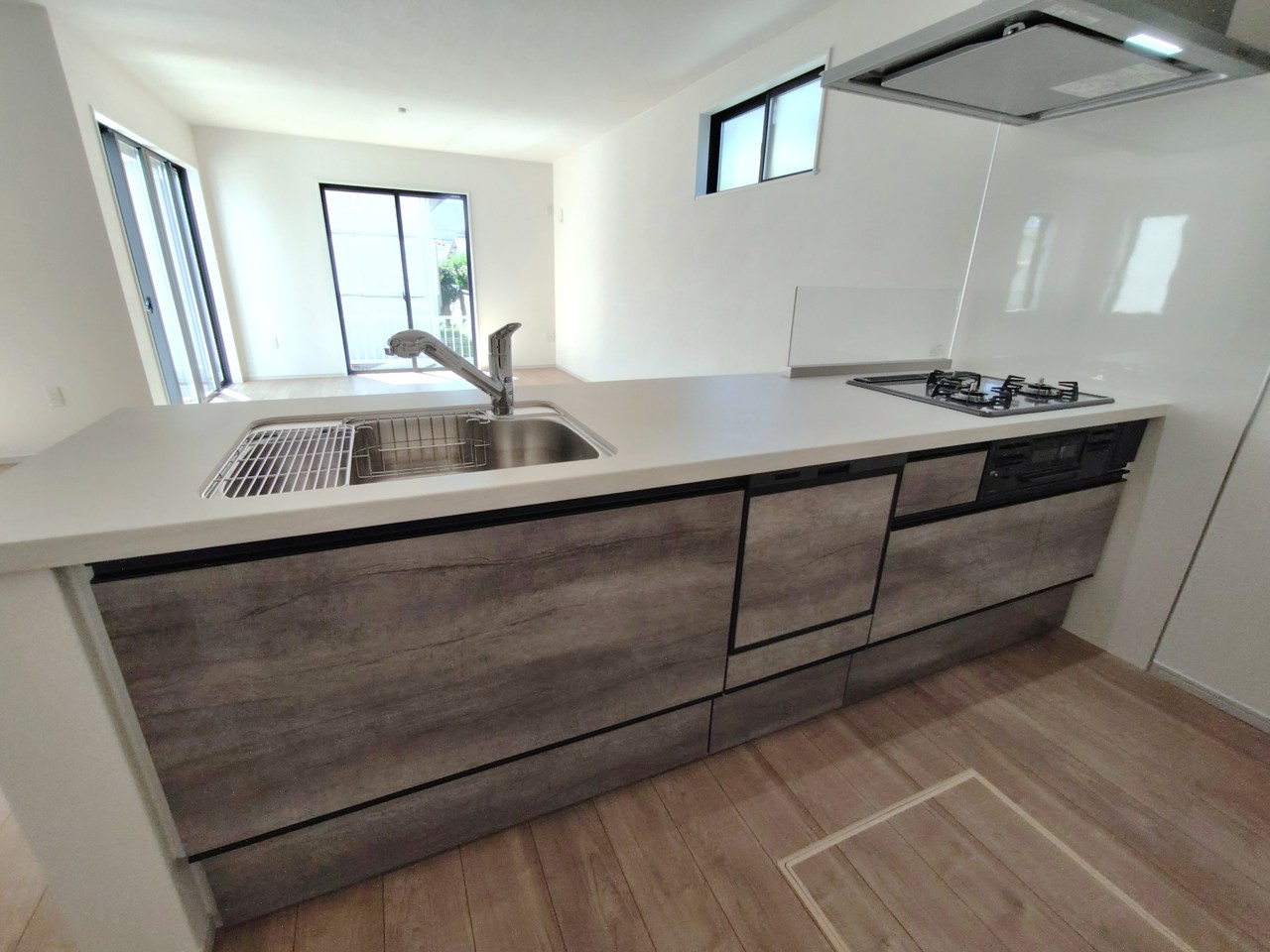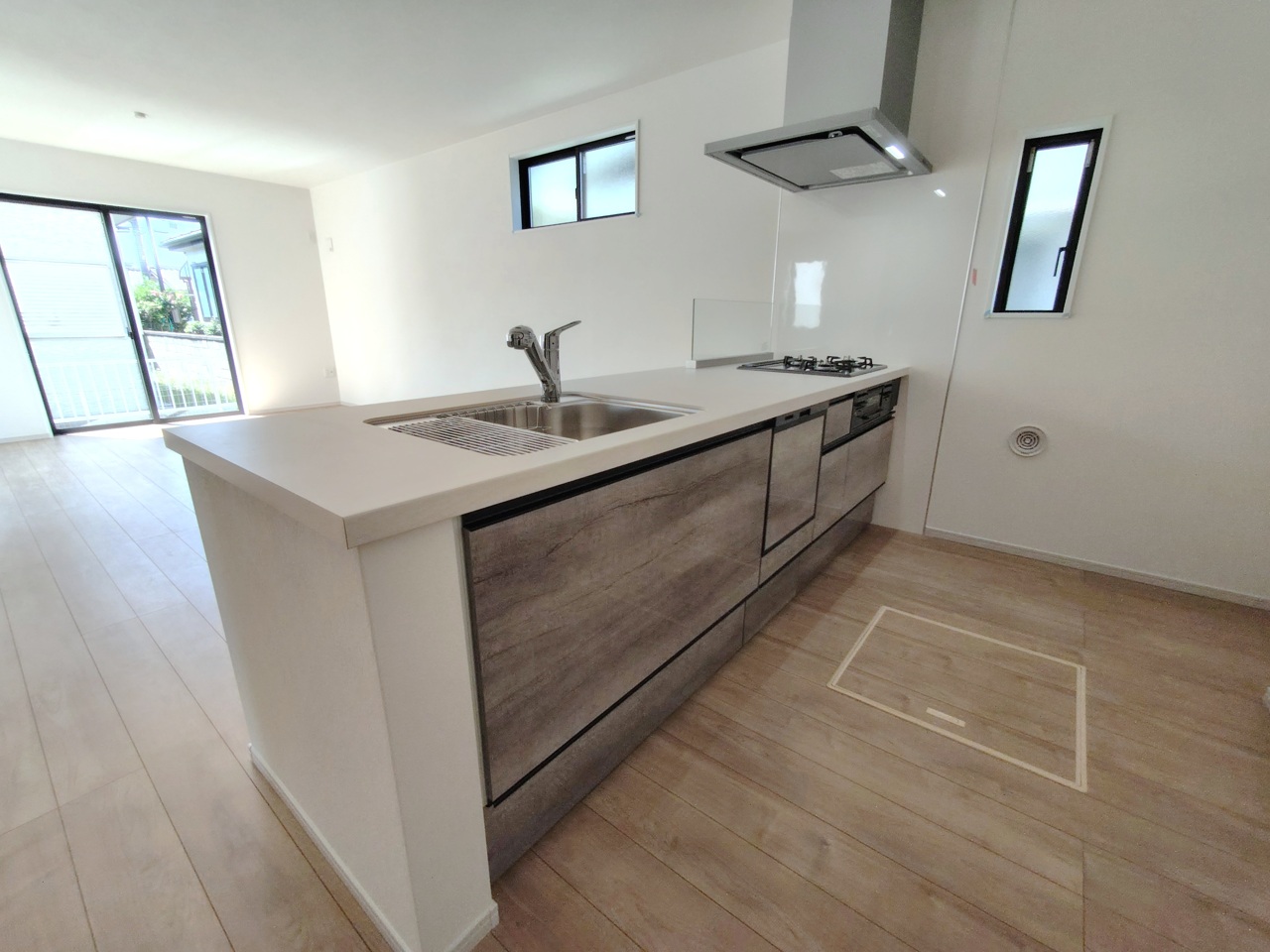 会話が弾む対面キッチンは小窓×換気扇の効果的な換気でリビングに臭い篭らず♪