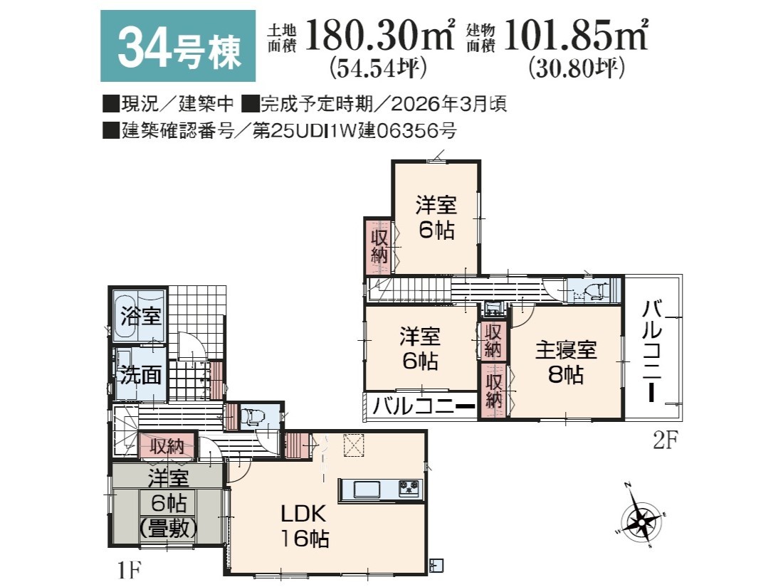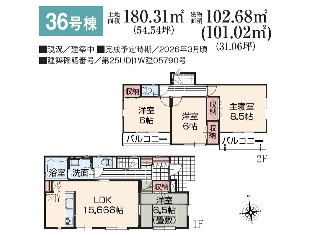 | 建築確認番号 | 第25UDI1W建04786号、他 | 駐車スペース | 2台(カースペース) |
