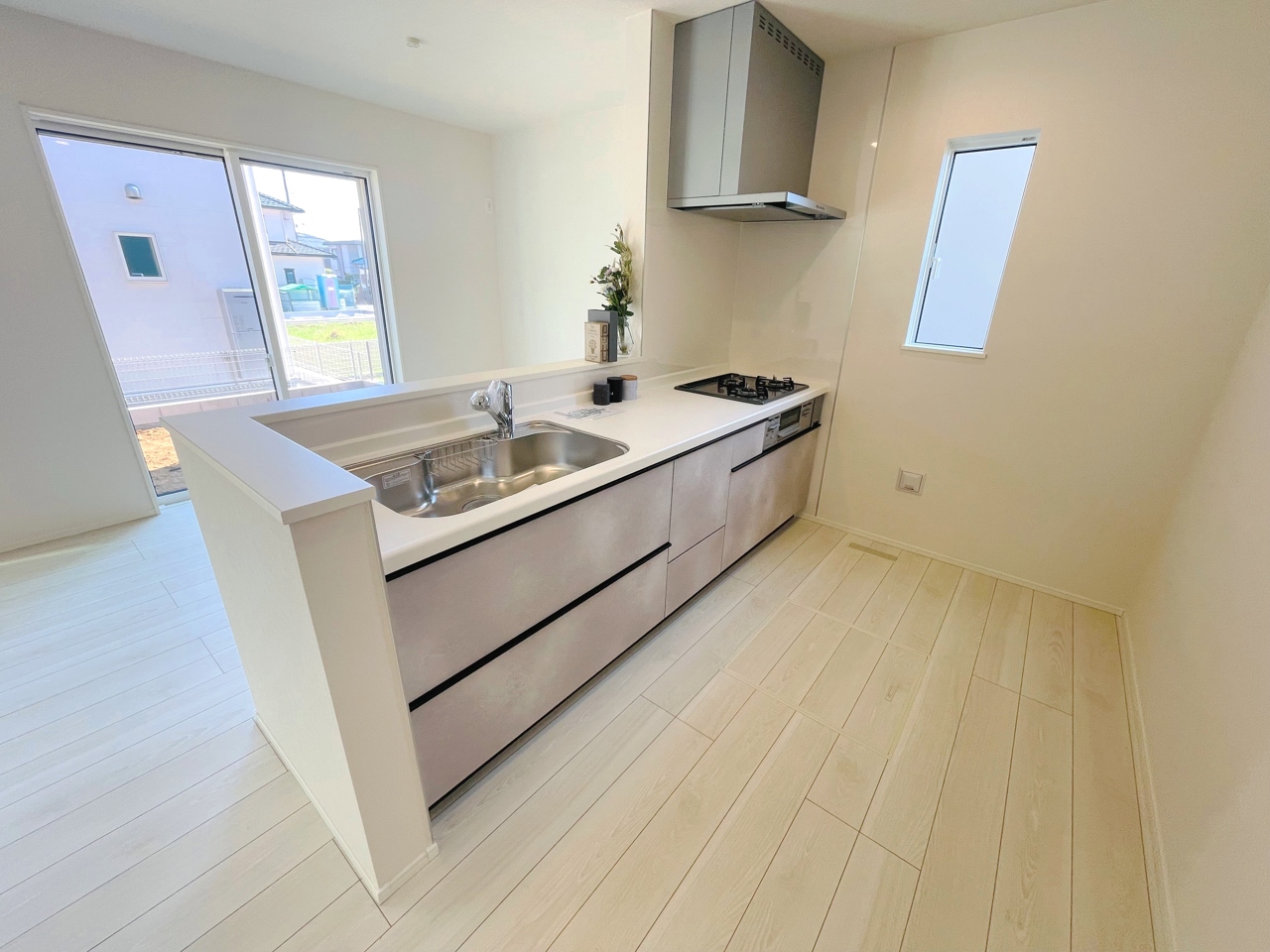 窓が設けられた対面キッチンは通風良好でリビングに臭いも篭らず♪