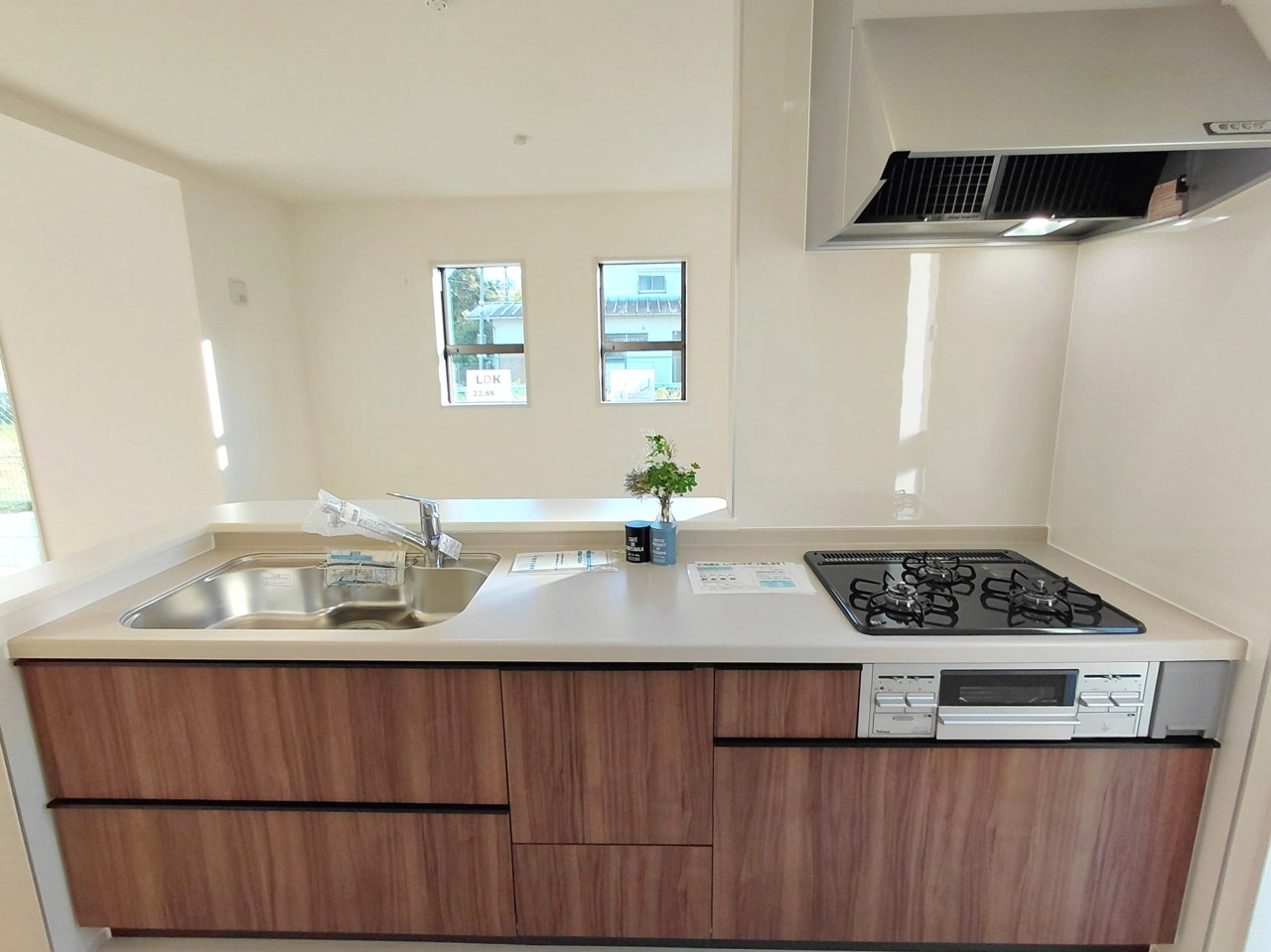 使い勝手の良いカウンターキッチンはお料理しながらリビングで遊ぶお子様も見守れます♪(2・3号棟)