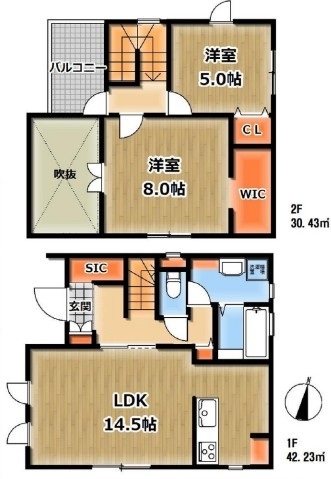| 間取 | 2LDK (LDK14.5帖、洋室8帖、洋室5帖) | ||