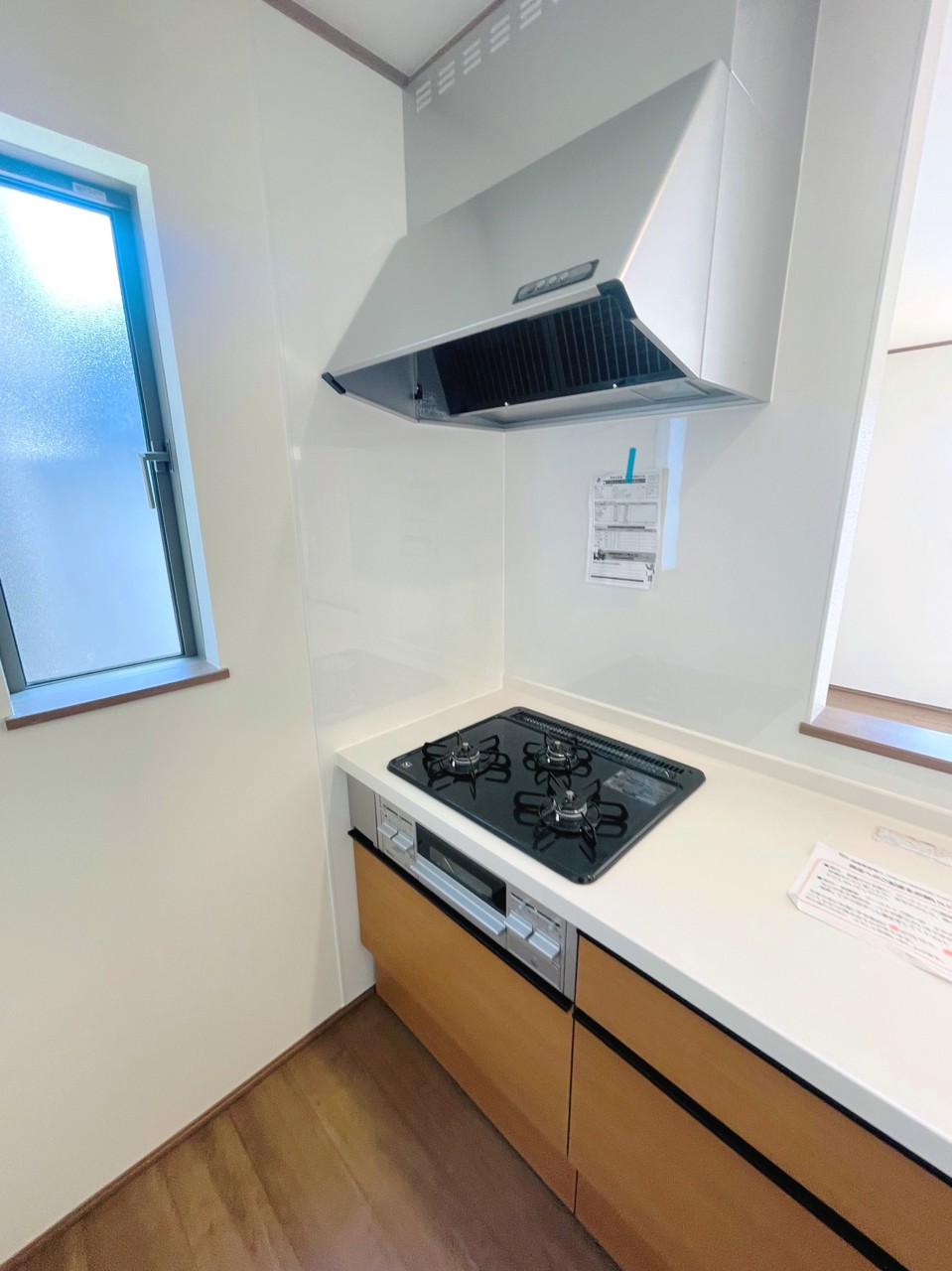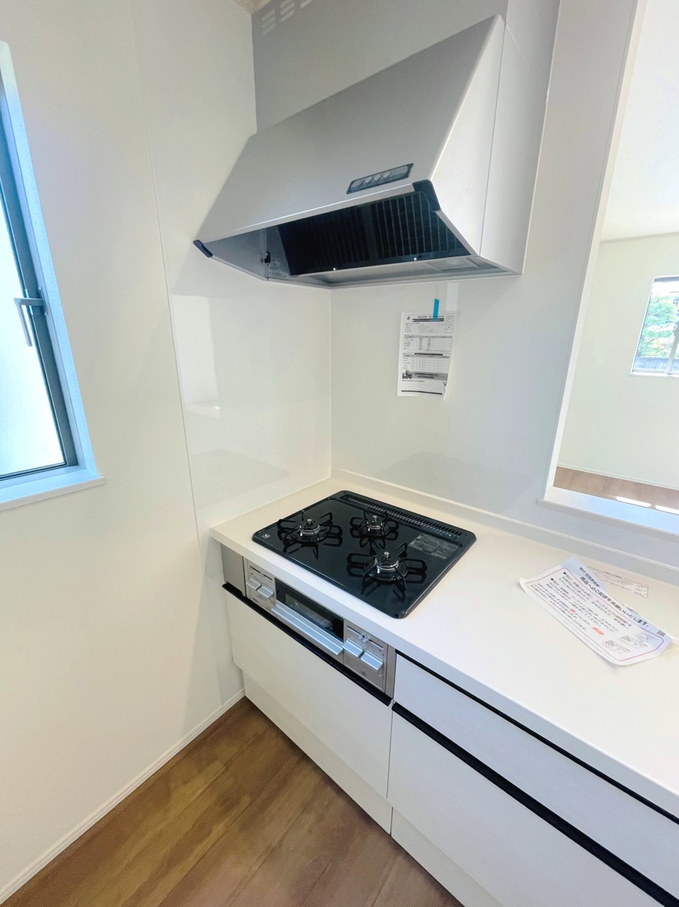 使い勝手の良い対面キッチンは小窓×換気扇の効果的な換気でリビングに臭い篭らず♪