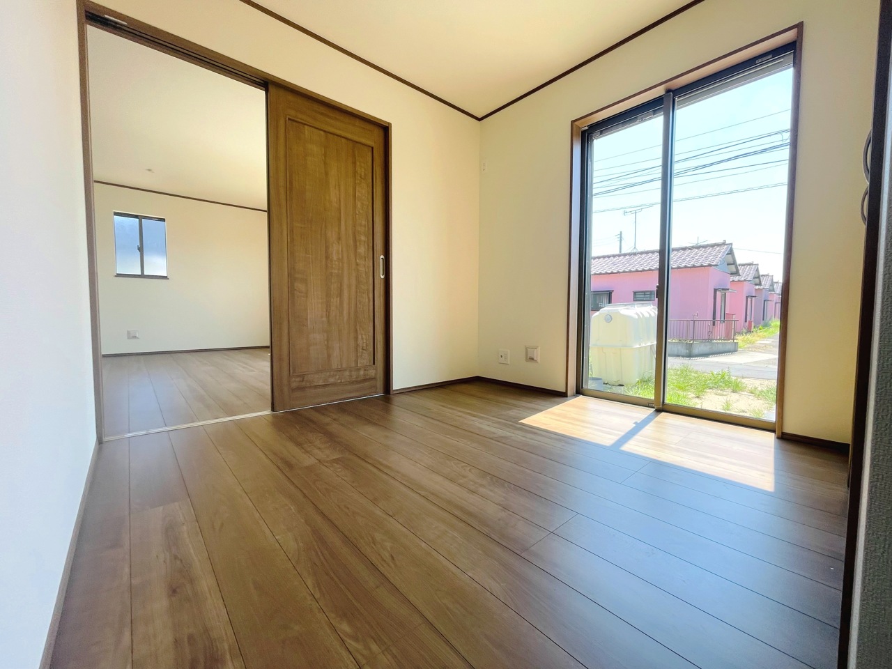 リビング続きの洋室引戸を開放するとリビングとの一体感が得られます♪