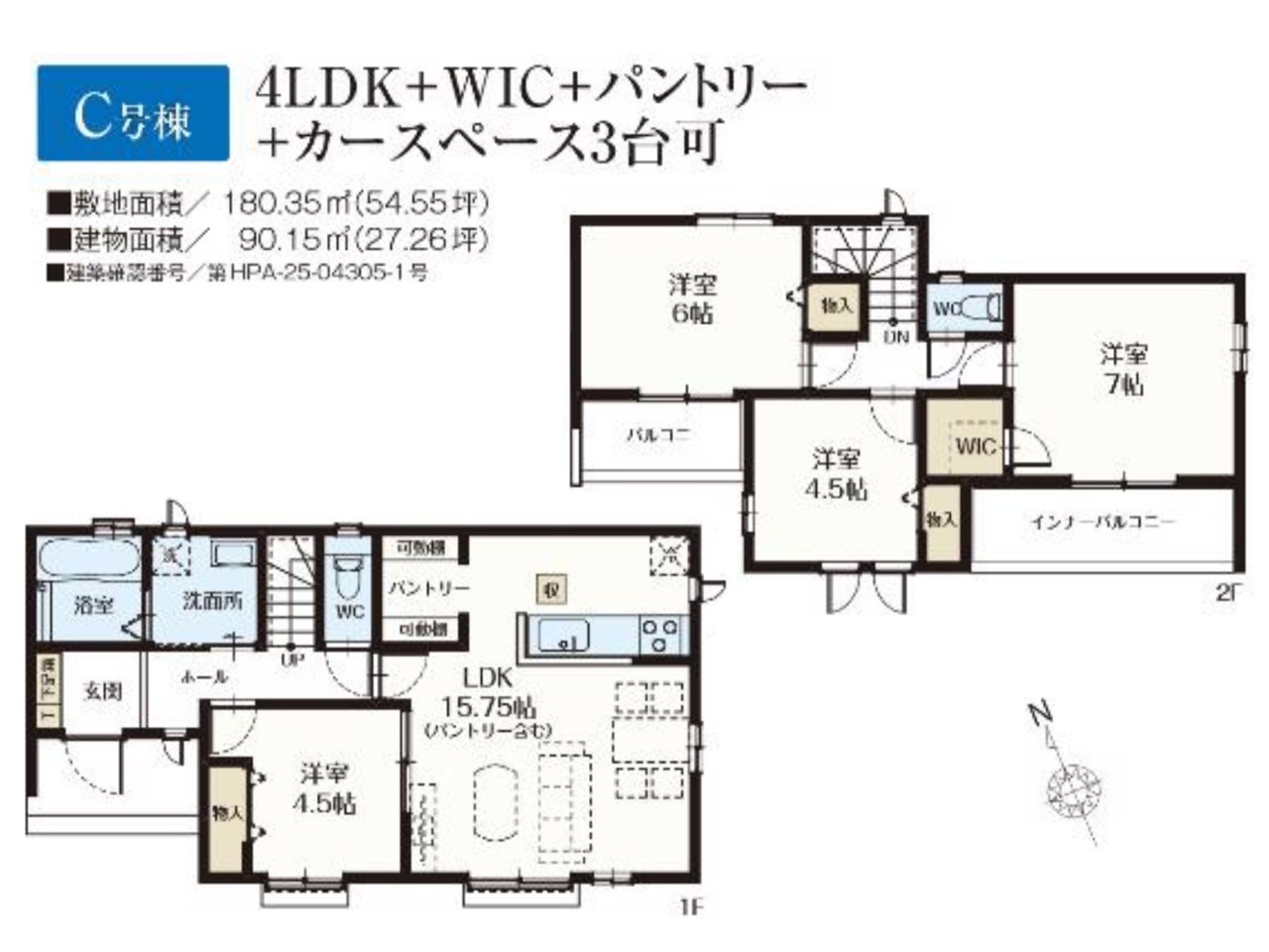 | 建築確認番号 | 第HPA-25-04304-1号、他 | 駐車スペース | 3台以上(カースペース:並列) |