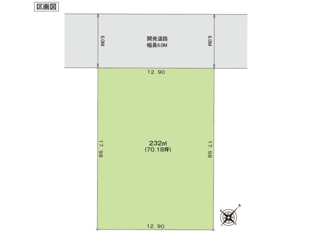 | 接道 | 北西側6M公道に12.9M接道 | 小学校区 | 木更津市立金田小学校(1040m) |