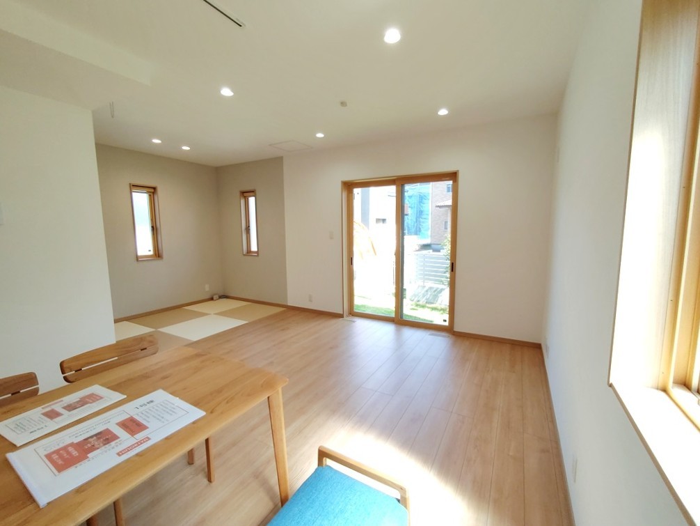 たっぷりの陽光に包まれる開放感あるLDKの一角にはタタミコーナー♪