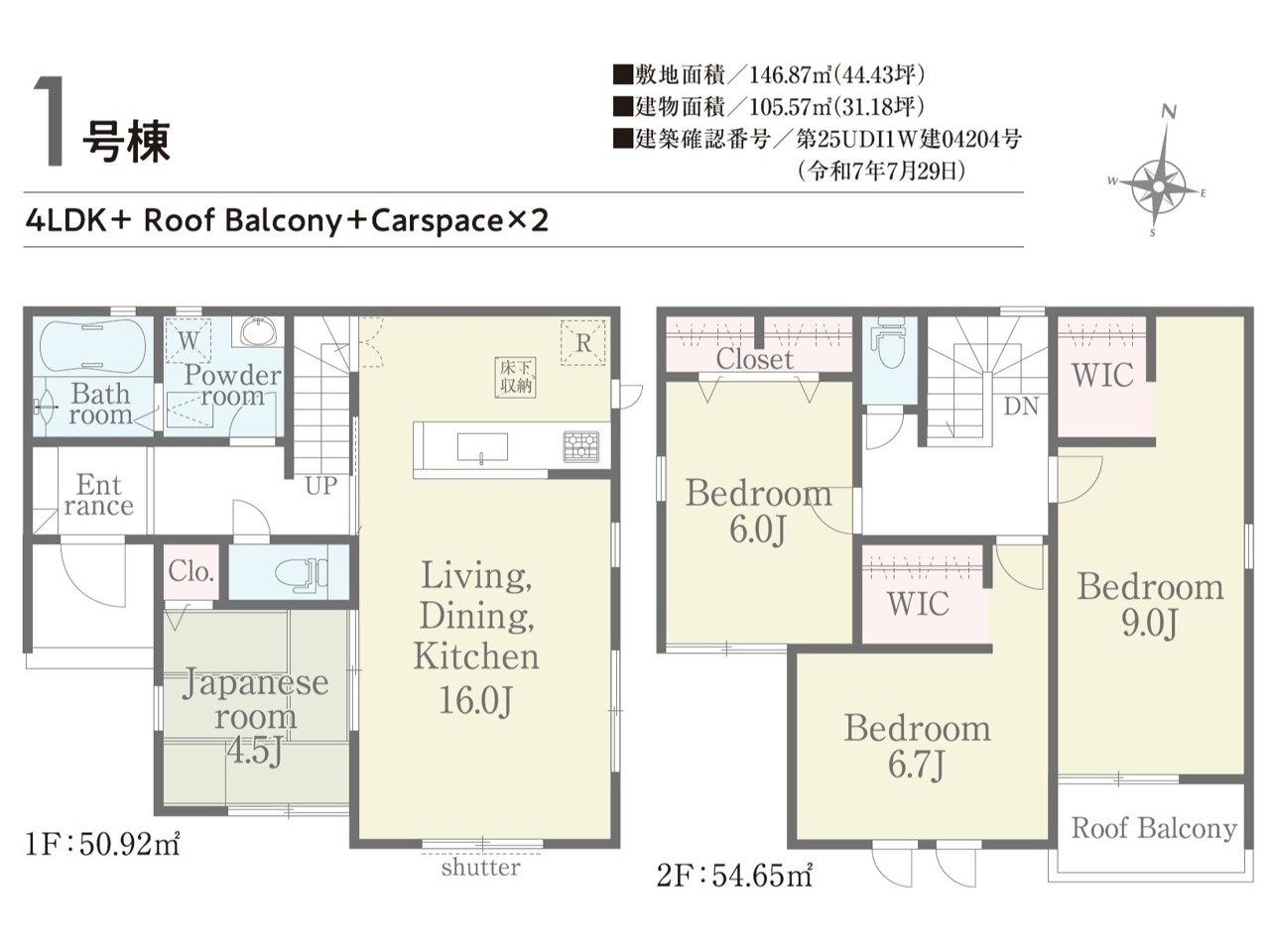 | 建築確認番号 | 第25UDI1W建04204号 | 駐車スペース | 2台(カースペース:並列) |