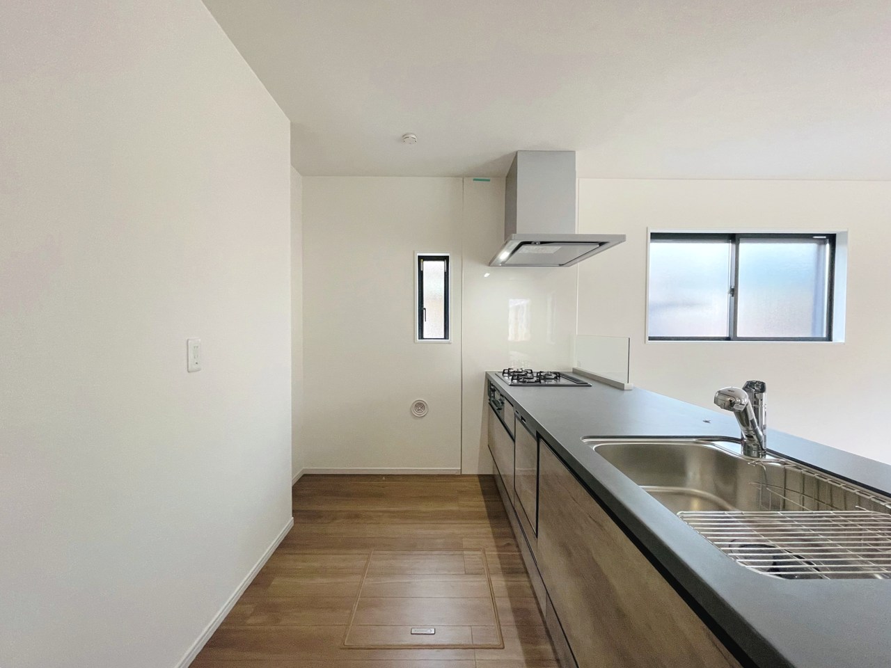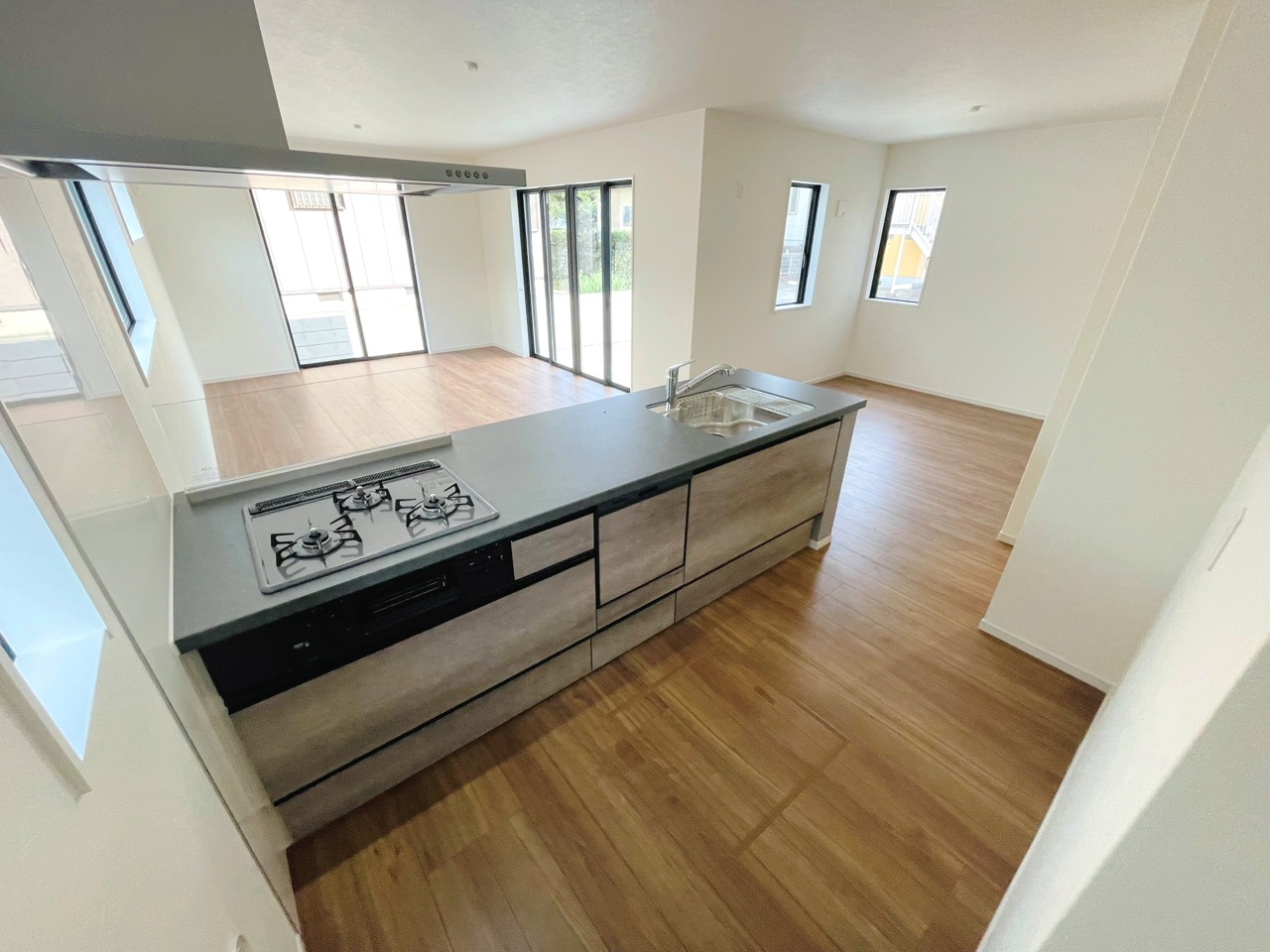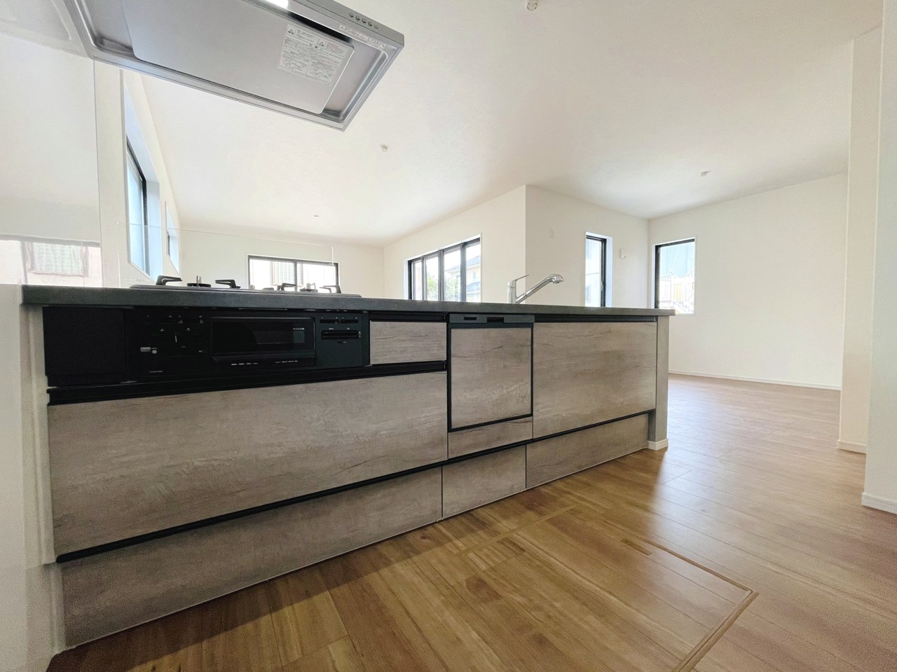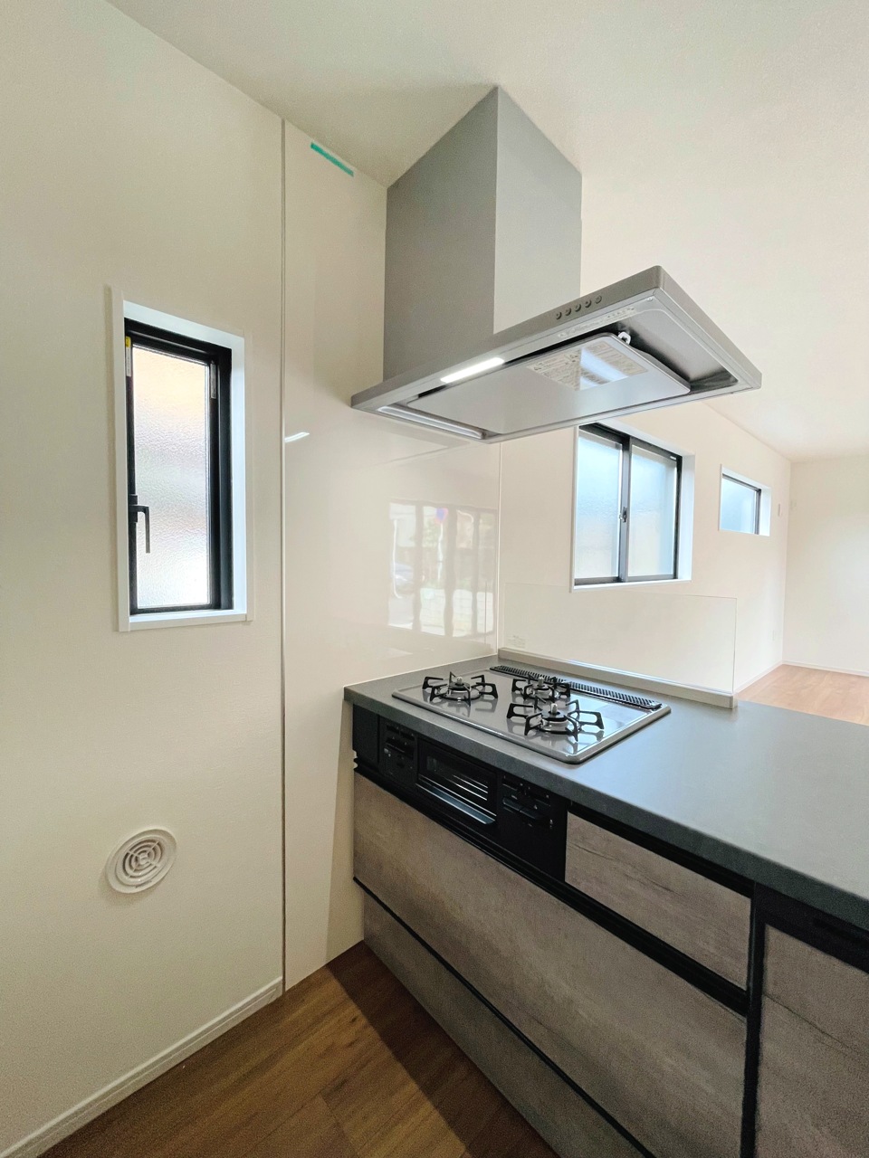 会話が弾む対面キッチンは小窓×換気扇の効果的な換気でリビングに臭い篭らず♪