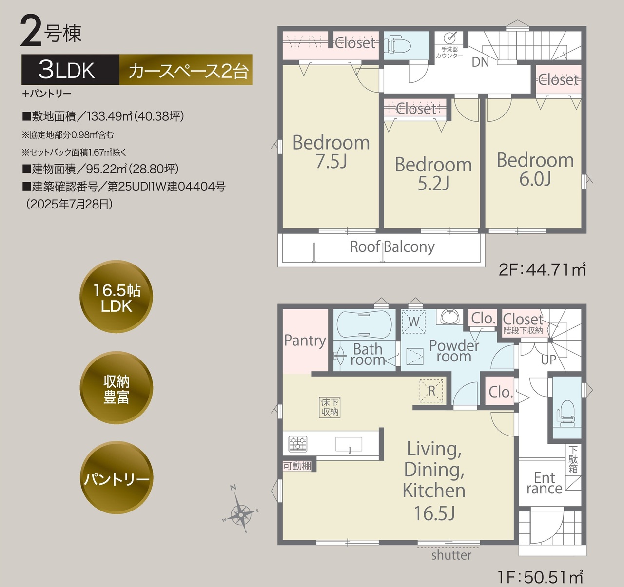 | 建築確認番号 | 第25UDI1W建04404号 | 駐車スペース | 1台(カースペース) |