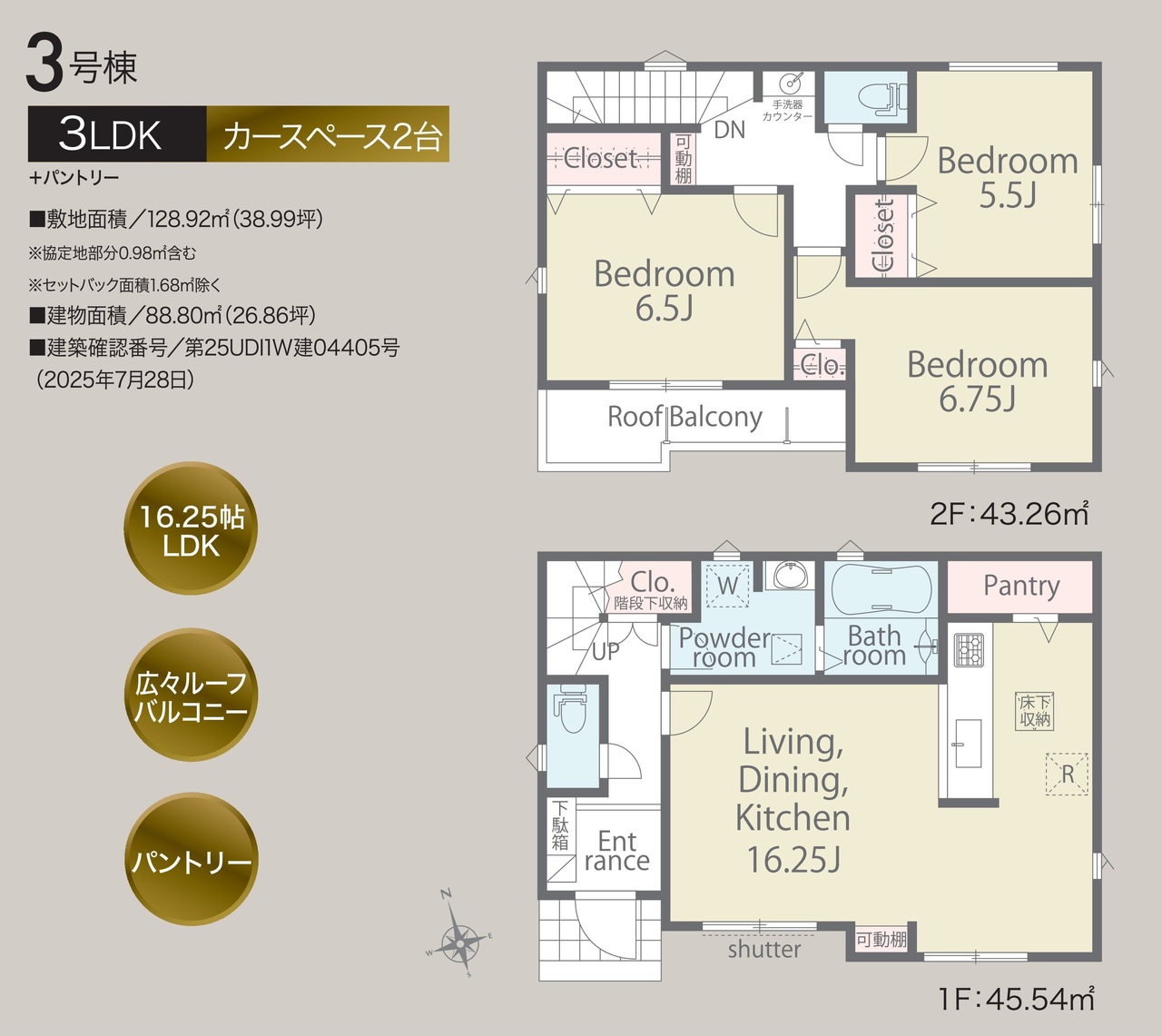 | 土地面積 | 128.92m² 公簿 (セットバック1.68m²) | ||