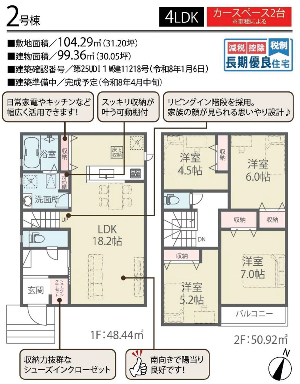 | 建築確認番号 | 第25UDI1W建11218号 | 駐車スペース | 2台(カースペース:並列) |