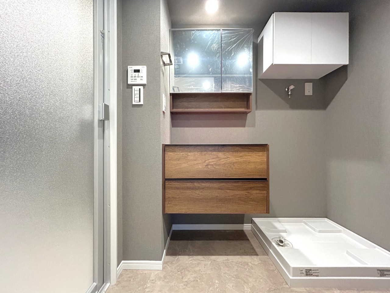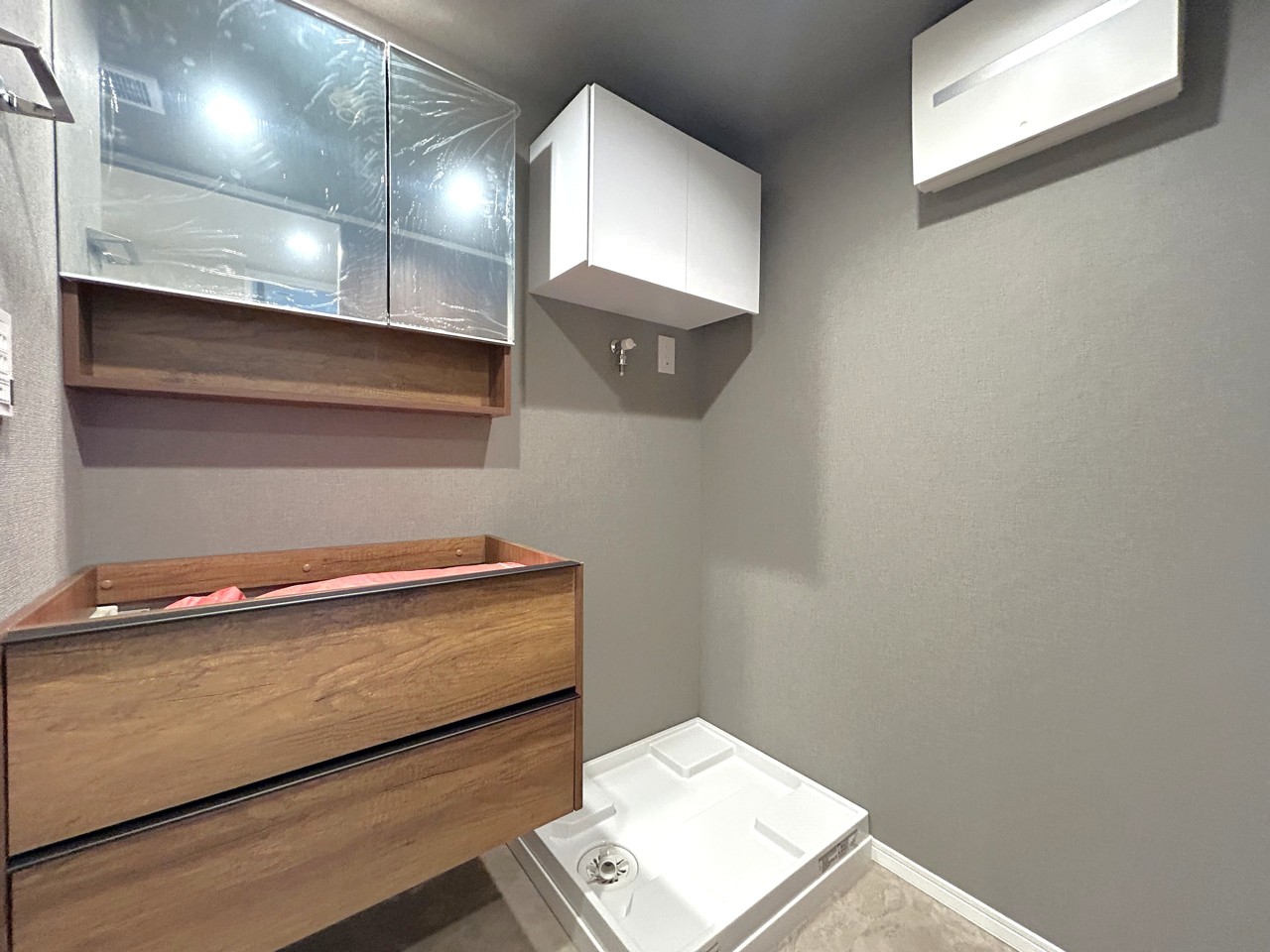 ■洗面台交換:防水パン交換・吊戸棚交換