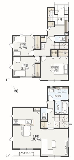 | 間取 | 3LDK (LDK19.7帖、洋室6.9帖、洋室5.2帖、洋室4.7帖) | ||