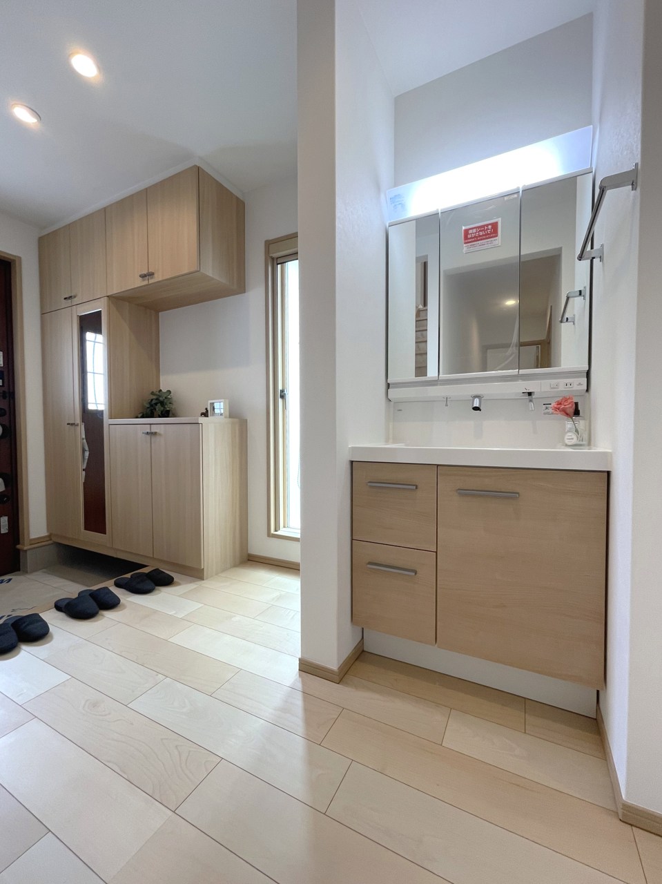玄関そばの洗面台は帰宅後スグに手を洗う習慣を作ることも♪