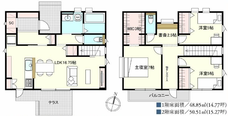 | 間取 | 3LDK (LDK16.75帖、洋室7帖、洋室5帖、洋室5帖) | ||