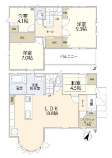 | 間取 | 4LDK (洋室18.8帖、洋室9.3帖、洋室7帖、洋室4.1帖、和室4.5帖) | ||