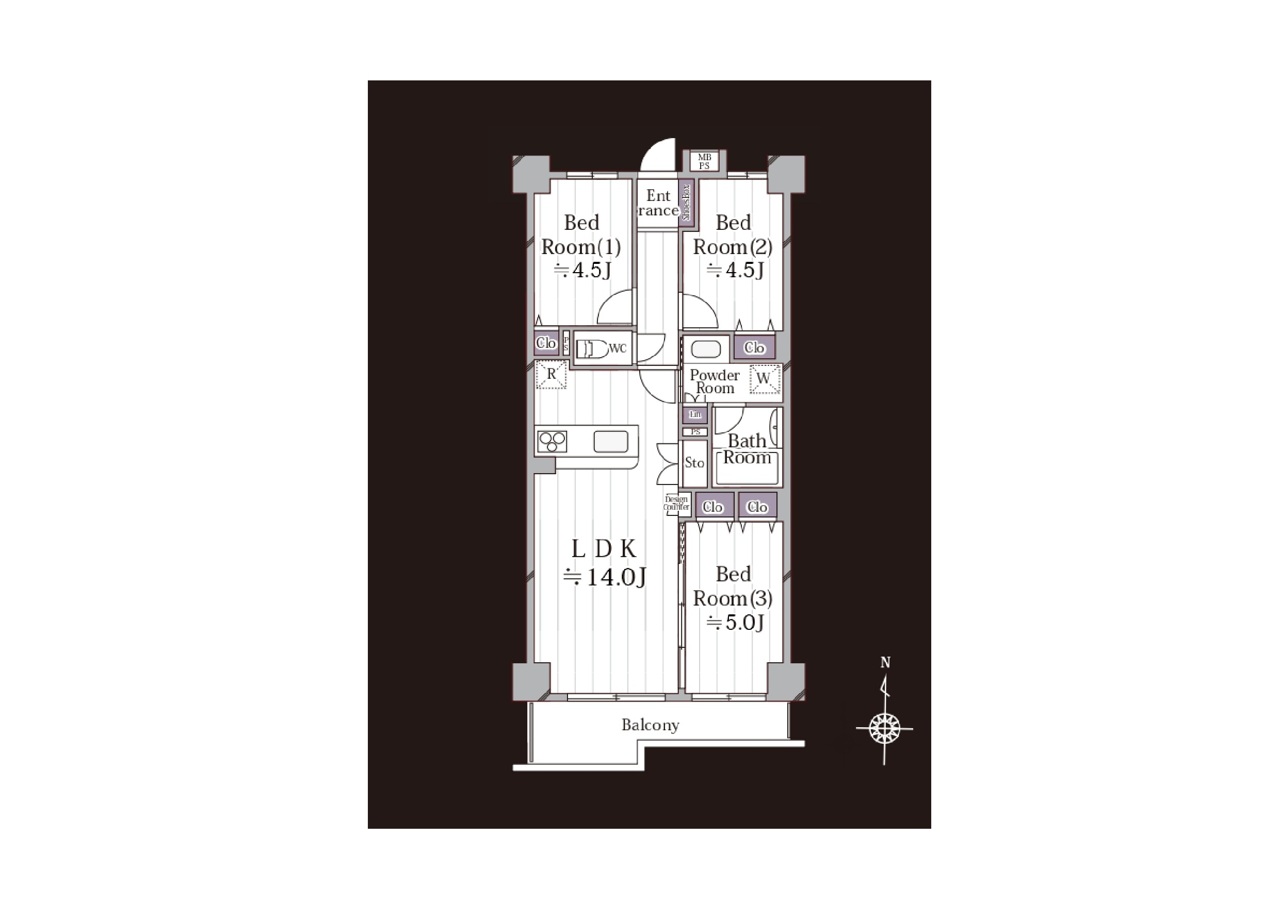 | 間取 | 3LDK (LDK14帖、洋室4.5帖、洋室4.5帖、洋室5帖) | ||