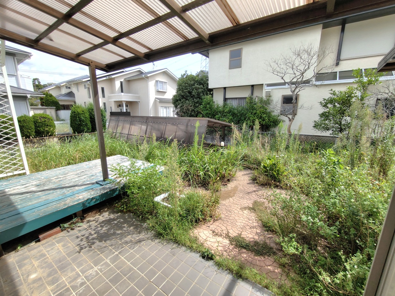 ガーデニングや家庭菜園なども楽しめる広々としたお庭にはウッドデッキあり♪