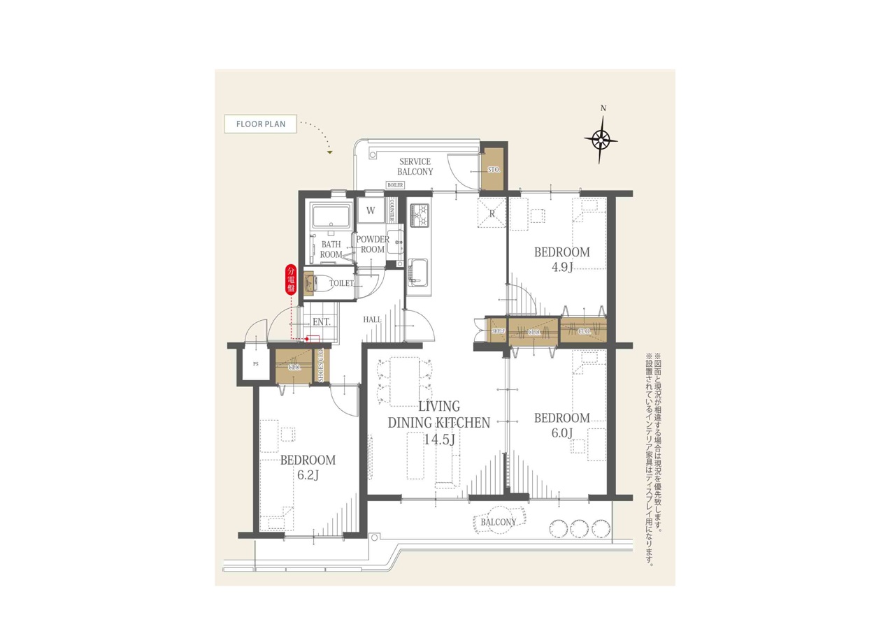 | 間取 | 3LDK (LDK14.5帖、洋室6.2帖、洋室6帖、洋室4.9帖) | ||
