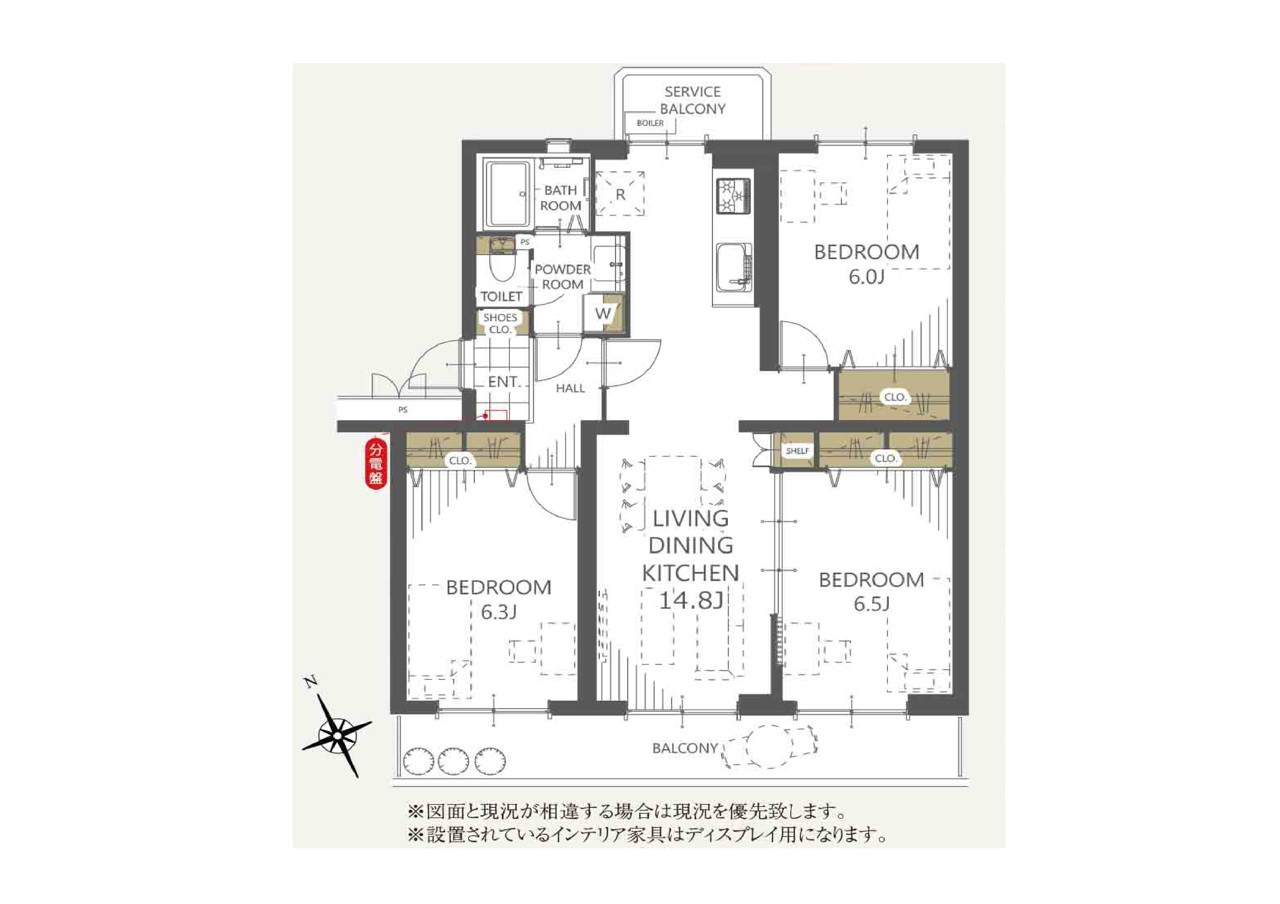 | 間取 | 3LDK (LDK14.8帖、洋室6.5帖、洋室6.3帖、洋室6帖) | ||