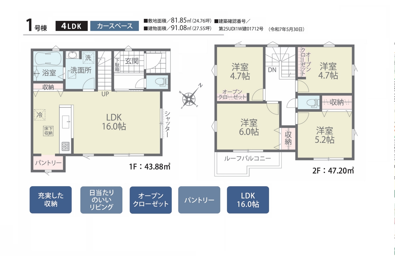 | 建築確認番号 | 第25UDI1W建01712号 | 駐車スペース | 1台(カースペース) |