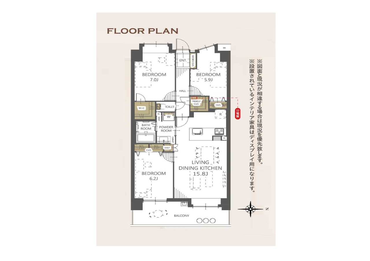 | 間取 | 3LDK (LDK15.8帖、洋室7帖、洋室6.2帖、洋室5.9帖) | ||