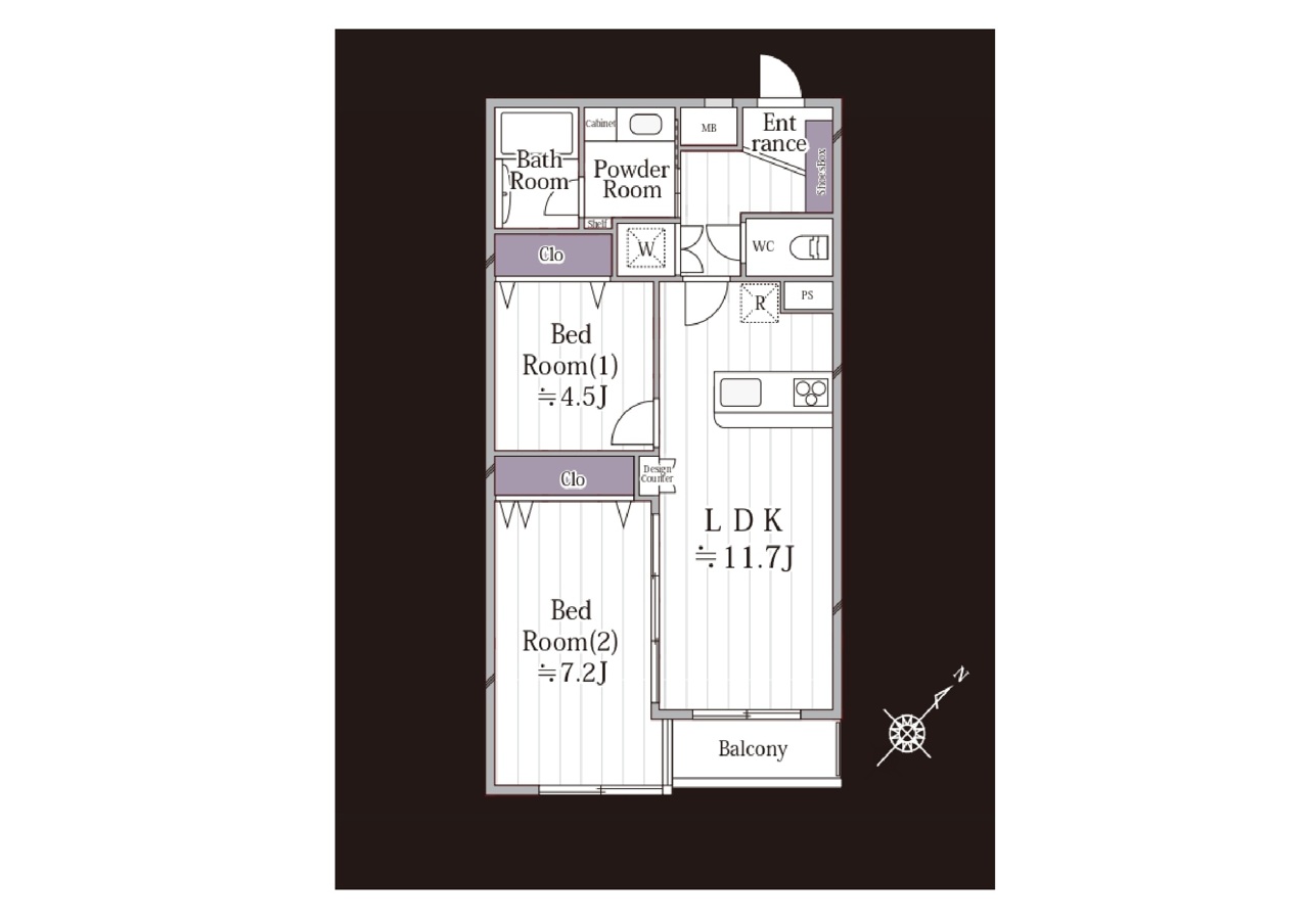 | 間取 | 2LDK (LDK11.7帖、洋室7.2帖、洋室4.5帖) | ||