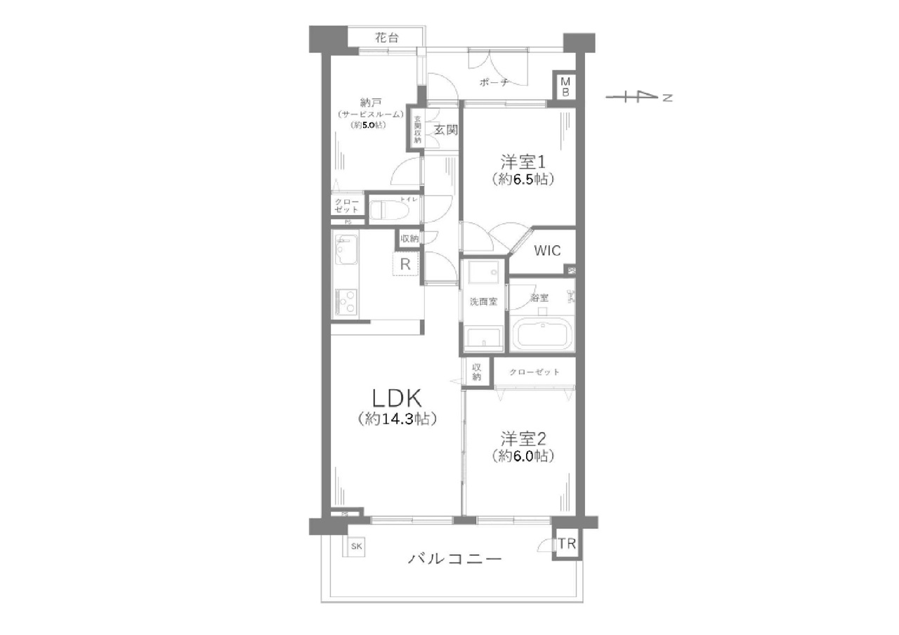 | 間取 | 2SLDK (LDK14.3帖、洋室6.5帖、洋室6帖、S5帖) | ||
