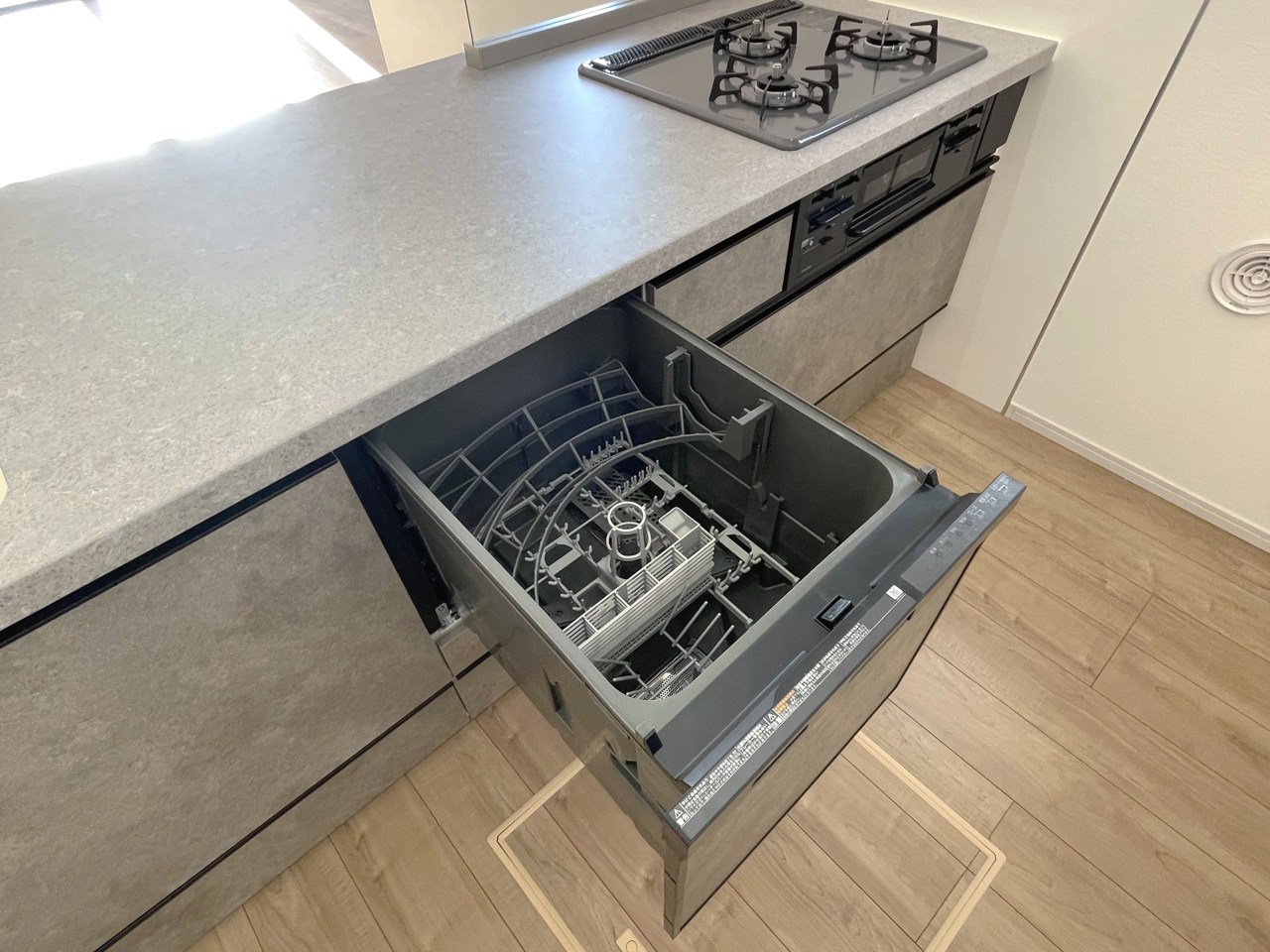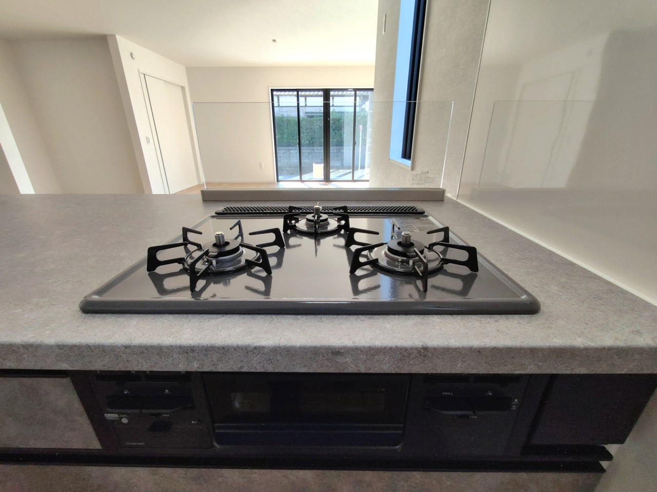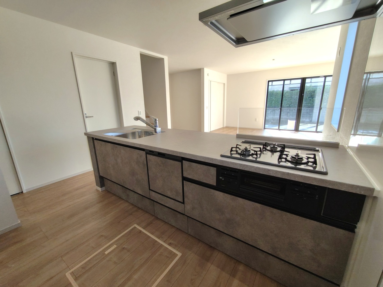 会話が弾む対面キッチンは小窓×換気扇の効果的な換気でリビングに臭い篭らず♪