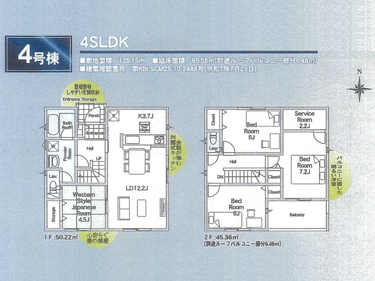 | 間取 | 4SLDK (LDK12.2帖、和室4.5帖、洋室7.2帖、洋室6帖、洋室6帖、S2.2帖) | ||