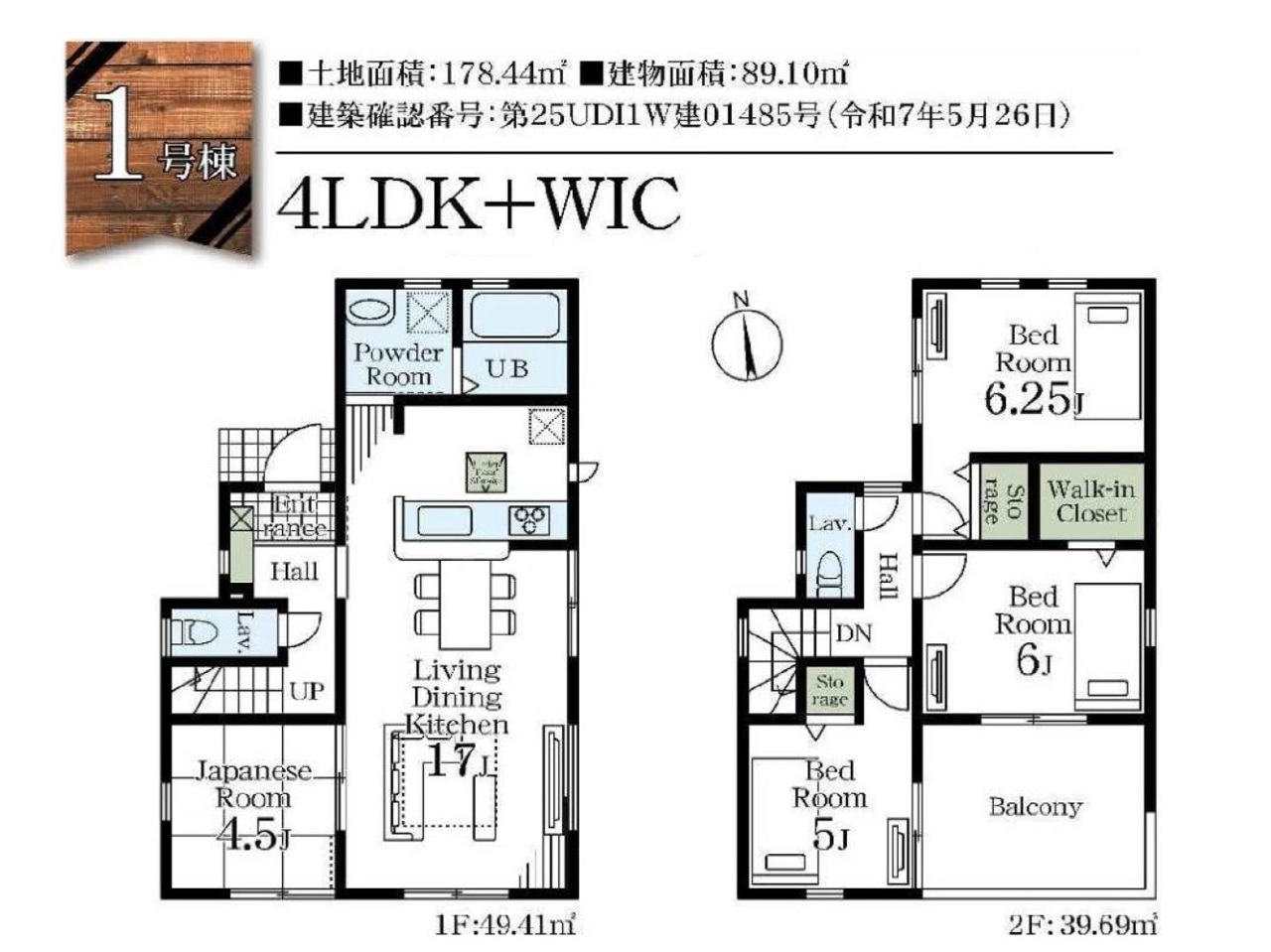 | 間取 | 4LDK + WICあり (LDK17帖、和室4.5帖、洋室6.25帖、洋室6帖、洋室5帖) | ||