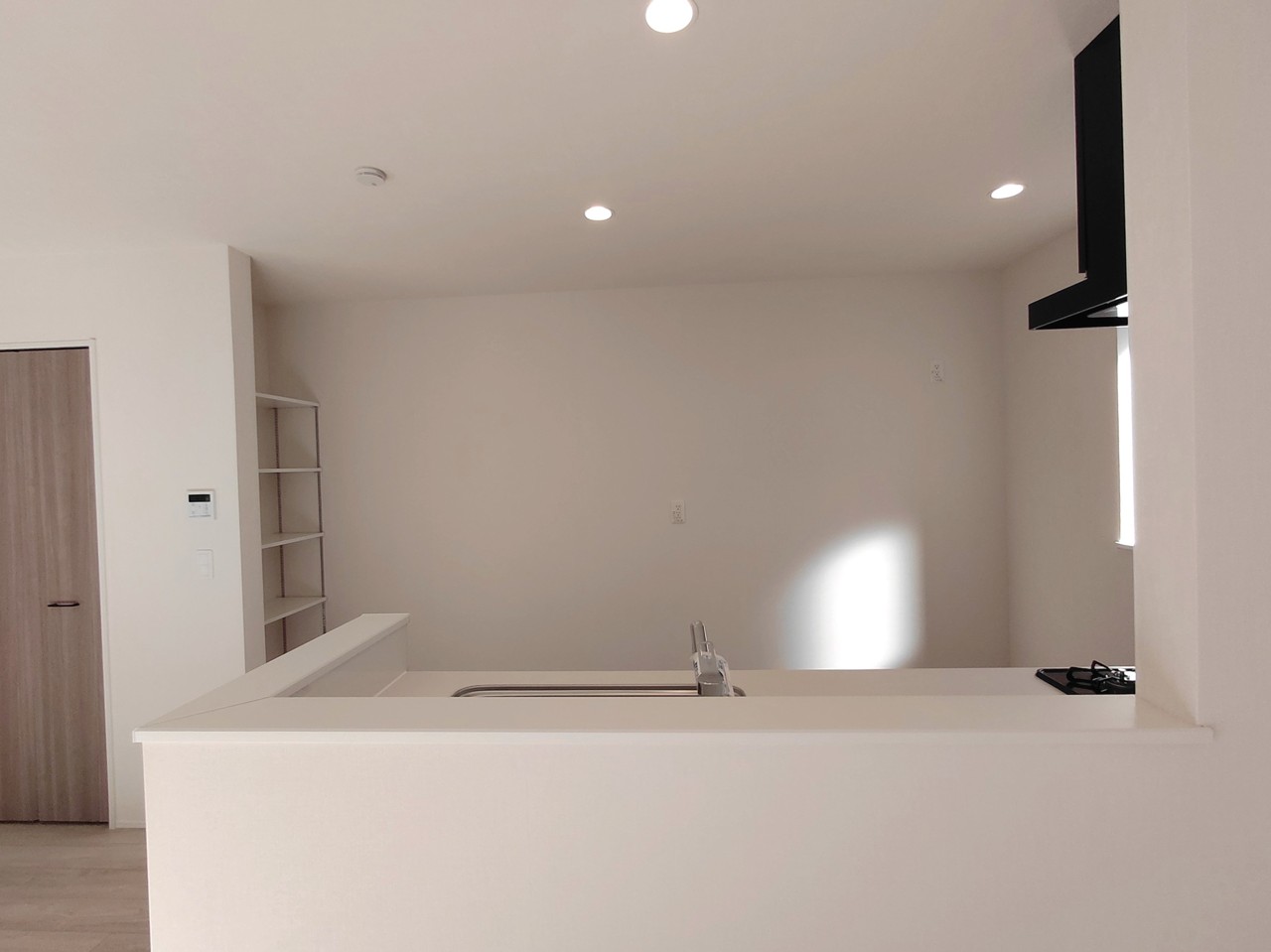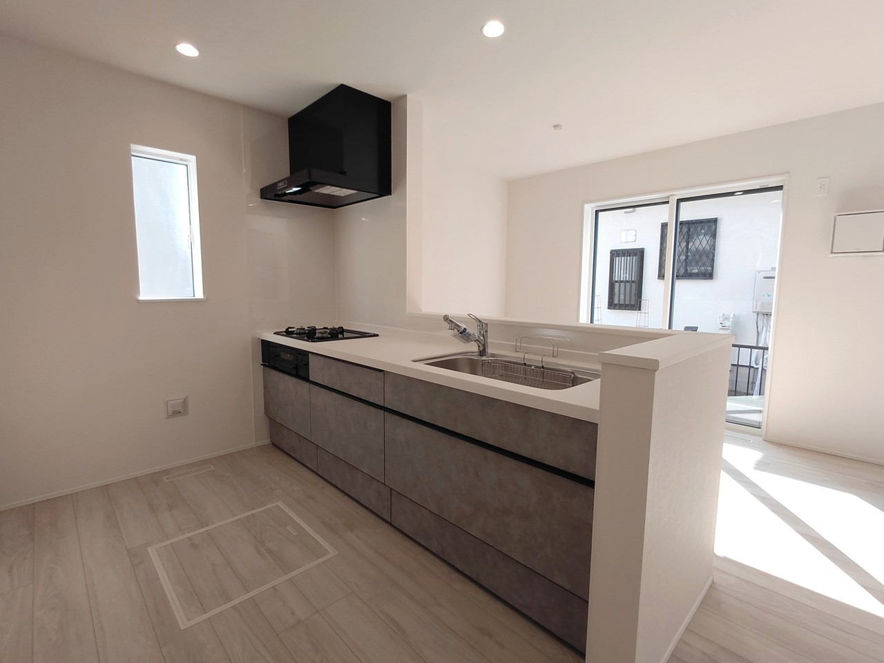 会話が弾む対面キッチンは小窓×換気扇の効果的な換気でリビングに臭い篭らず♪