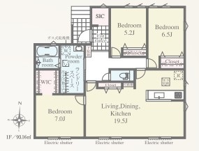 | 間取 | 3LDK (LDK19.5帖、洋室7帖、洋室6.5帖、洋室5.2帖) | ||
