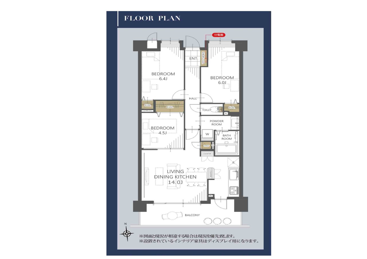 | 間取 | 3LDK (LDK14帖、洋室6.4帖、洋室6帖、洋室4.5帖) | ||