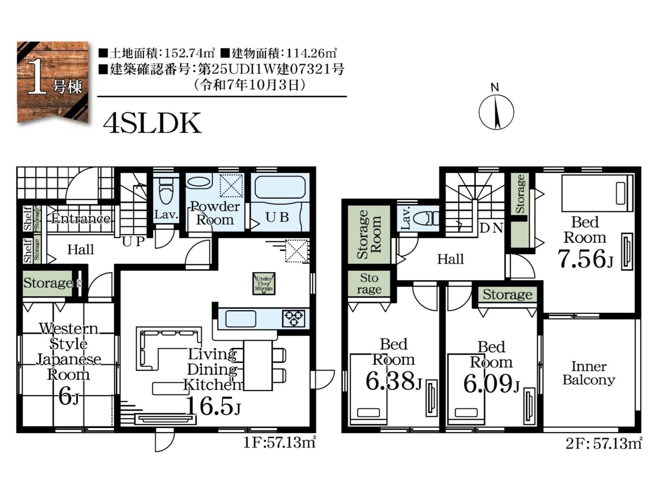 | 建築確認番号 | 第25UDI1W建07321号 | 駐車スペース | 2台(カースペース:並列) |