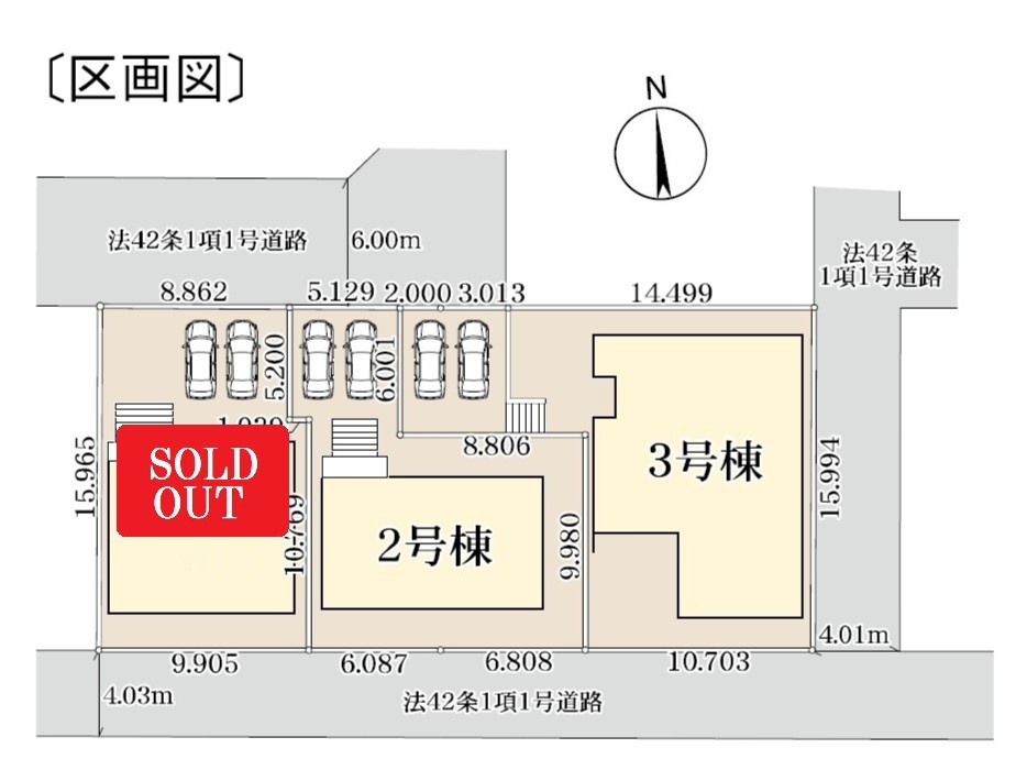 | 接道 | 北側6M公道に8.86M接道 南側4M公道に9.9M接道 |
