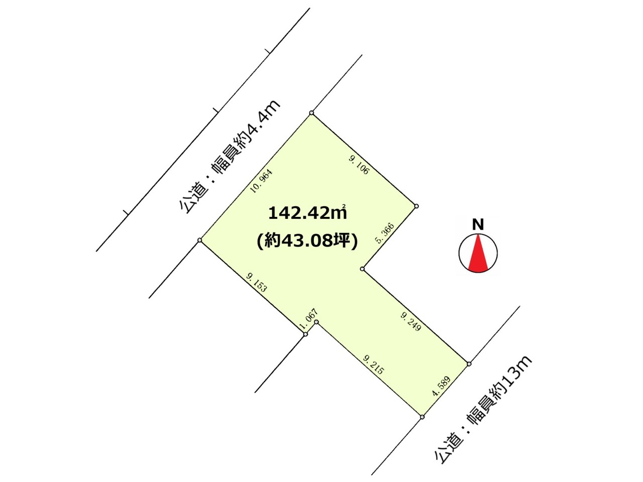 | 接道 | 北西側4.5M公道に接道 南東側12.5M公道に接道 |