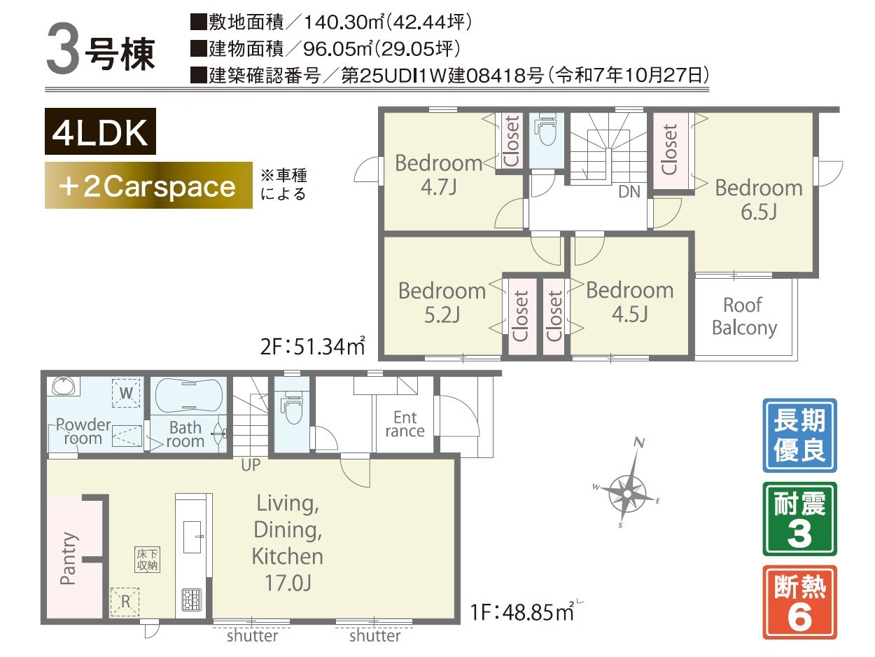 | 建築確認番号 | 第25UDI1W建08417号、他 | 駐車スペース | 2台(カースペース) |