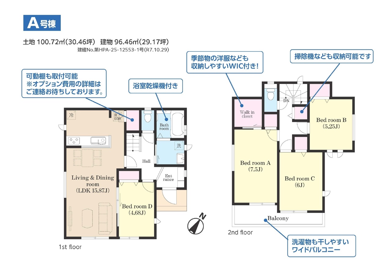 | 建築確認番号 | 第HPA-25-12553-1号 | 駐車スペース | 2台可(カースペース) |