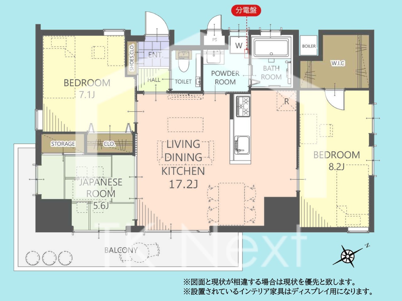| 間取 | 3LDK (LDK17.2帖、洋室8.2帖、洋室7.1帖、和室5.6帖) | ||