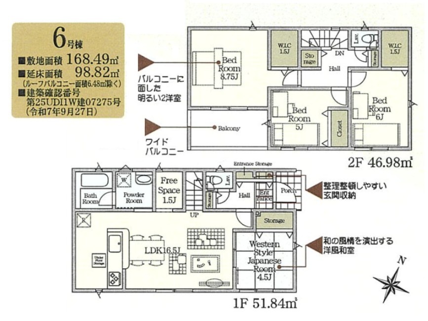 | 土地面積 | 168.49m² 実測 | ||