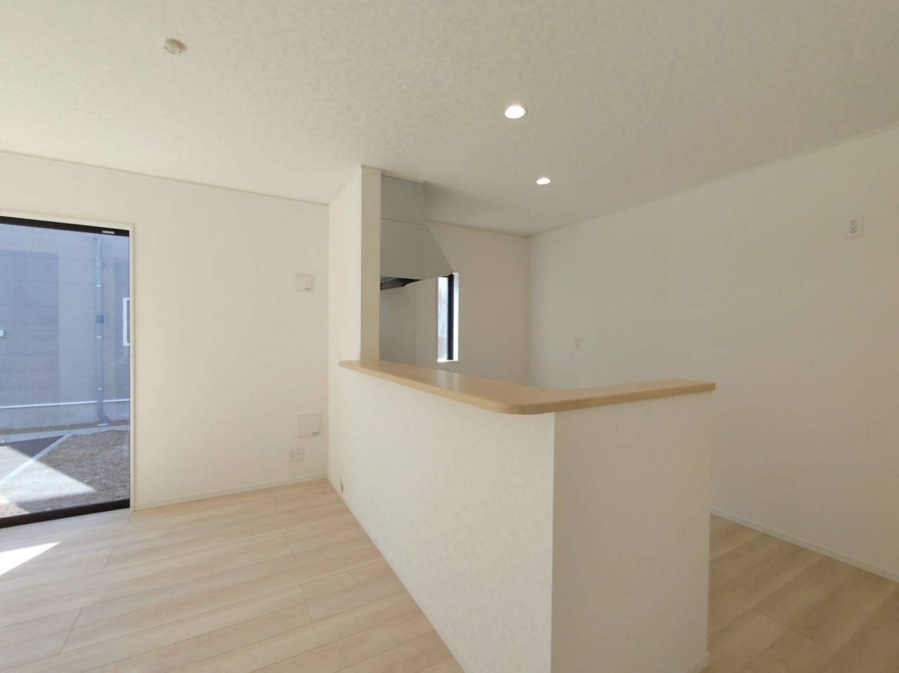 会話が弾む対面キッチンは小窓×換気扇の効果的な換気でリビングに臭い篭らず♪
