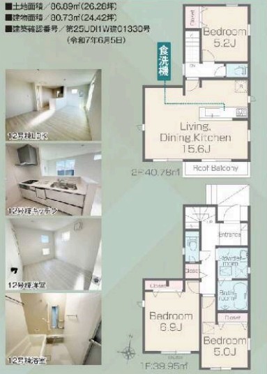 | 土地面積 | 86.89m² 公簿 (私道447m²別に有、私道持分比率:1/18) | ||