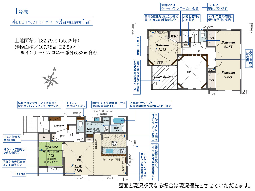 | 間取 | 4LDK (LDK17帖、洋室7.18帖、洋室5.47帖、洋室5.25帖、和室4.5帖) | ||
