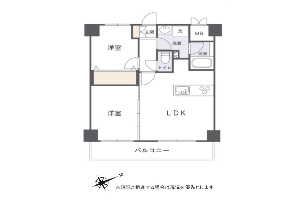 | 間取 | 2LDK (LDK、洋室、洋室) | ||