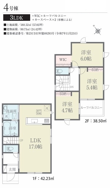 | 建築確認番号 | 第25UDI1W建09293号 | 駐車スペース | 2台(カースペース) |